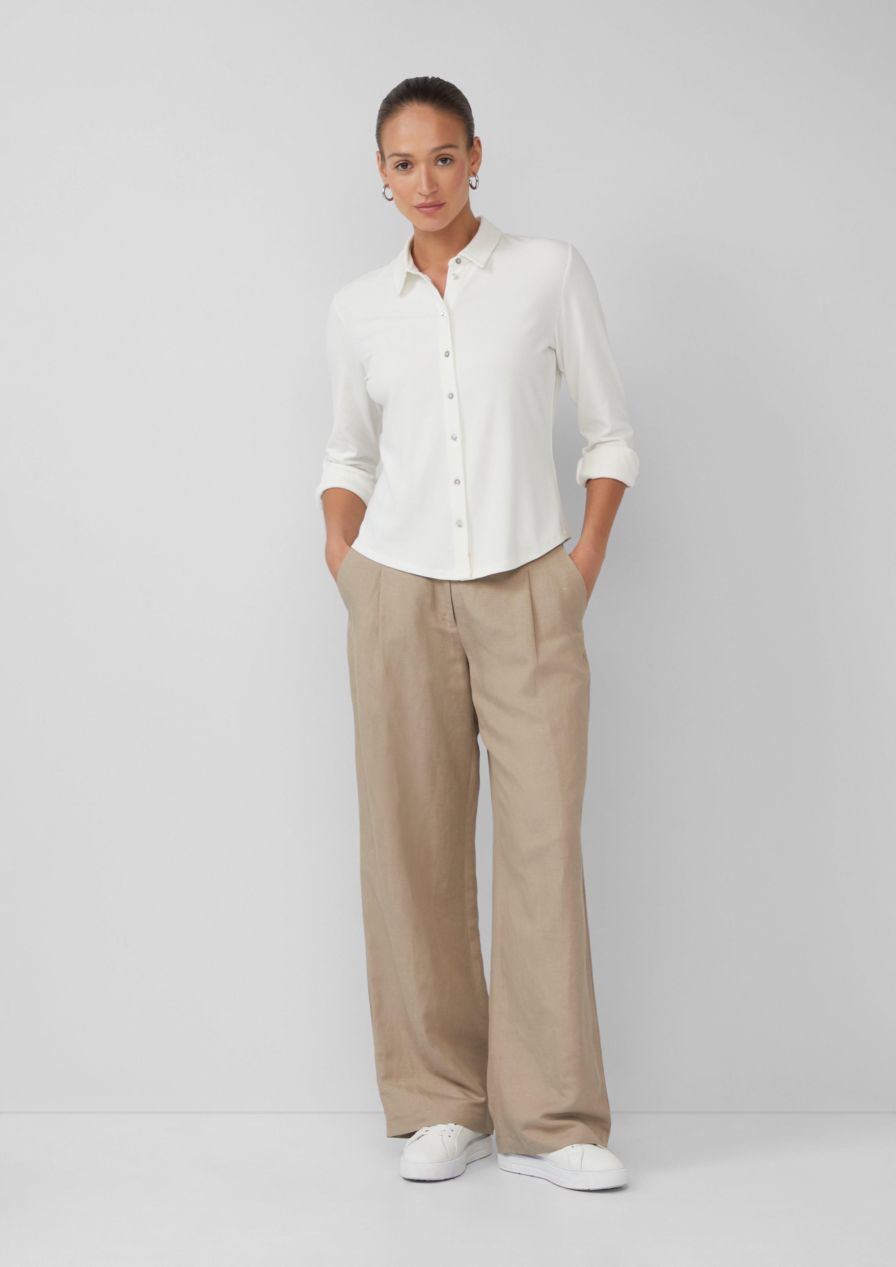 Podignite svoj stil ovom svestranom bluzom od žerseja. Izvrsno izrađena s bisernim gumbima, neprimjetno se prilagođava ležernom i poslovnom stilu. Dugi rukavi s manžetama dodaju dašak sofisticiranosti. Prigrlite samopouzdanje u odjevnom predmetu koji bez napora spaja udobnost i eleganciju za vaš dinamičan način života.